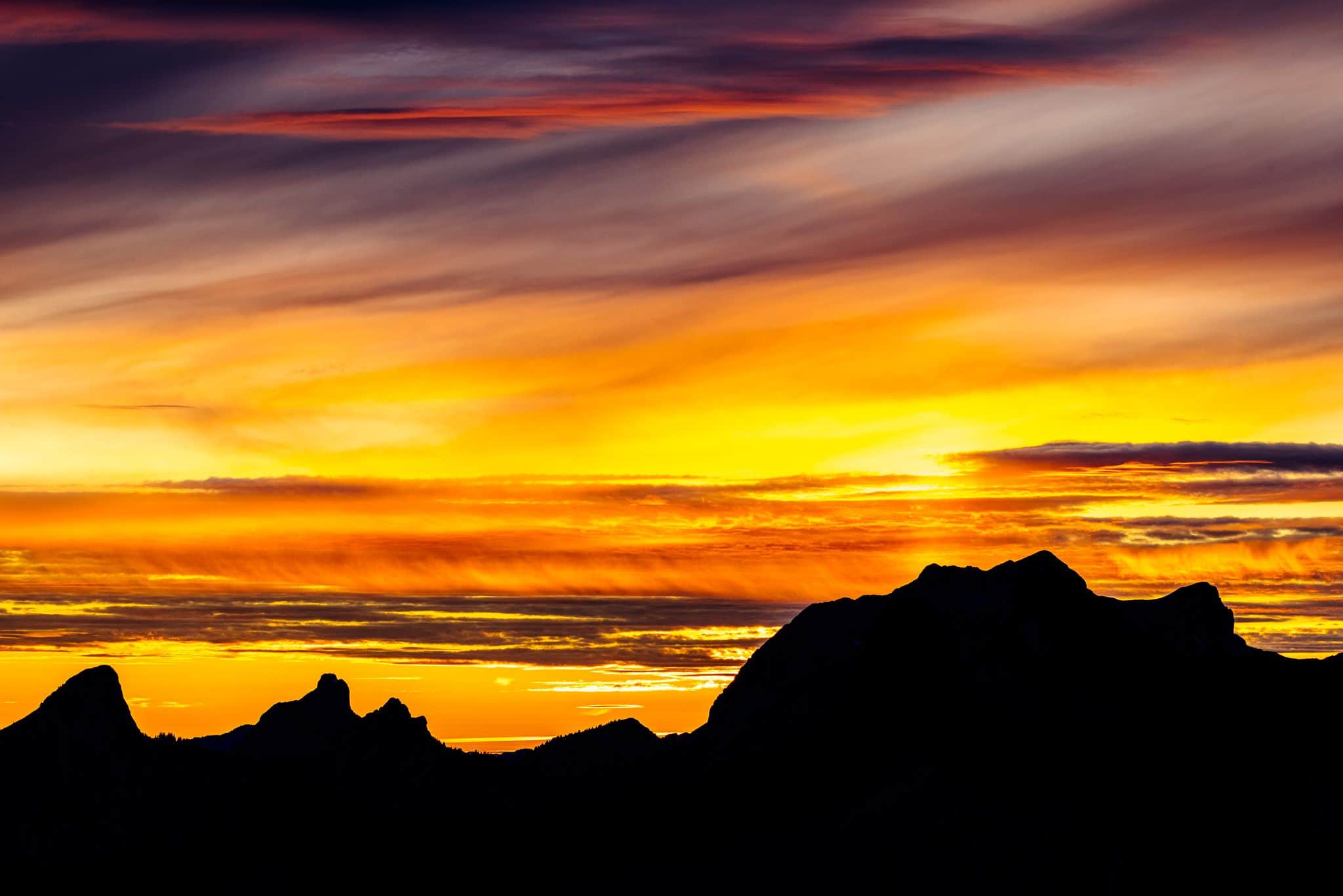 In the following minutes, there are a few more opportunities to photograph the impressive mountain scenery around Chamonix and Lake Geneva as silhouettes against the kitschy, colorful evening sky before the colors gradually fade.