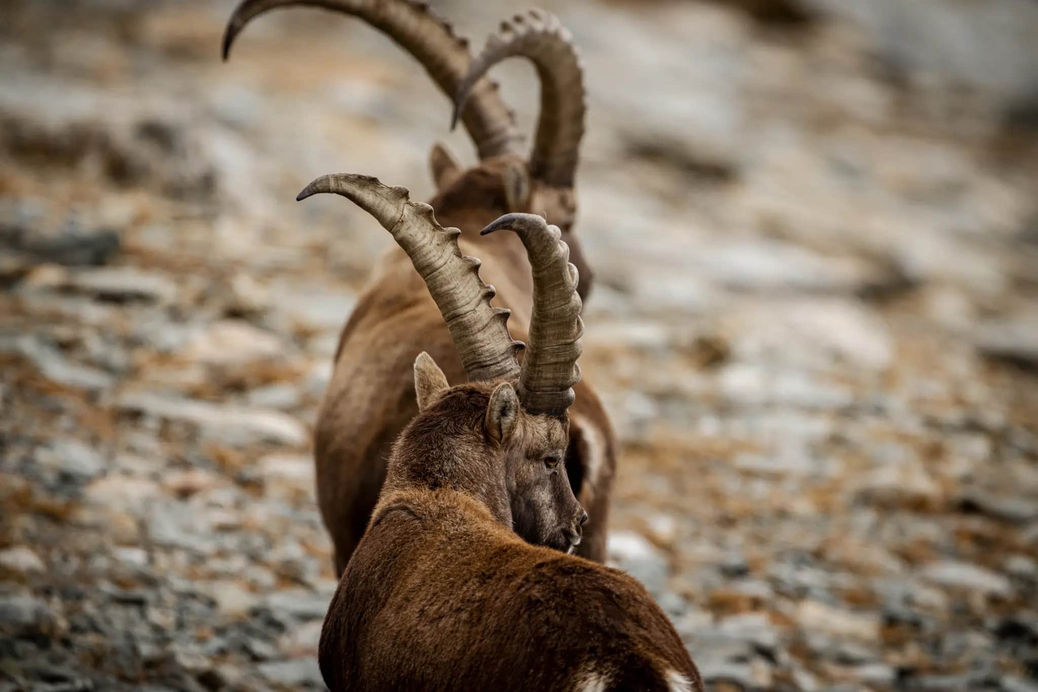 The most important thing is certainly a camera with a telephoto lens with the longest possible focal length (I would recommend a focal length of at least 200 mm, 400-800 mm is certainly optimal). The reason is quite simple: the longer the focal length, the less you have to approach the ibexes. The closer you get to the animals, the greater the risk that they will feel disturbed and move away. We humans are not exactly known for a squeamish approach to our nature anyway. Therefore, we should certainly take care not to startle these imposing animals unnecessarily and thus rob them of energy reserves that they would need for flight.