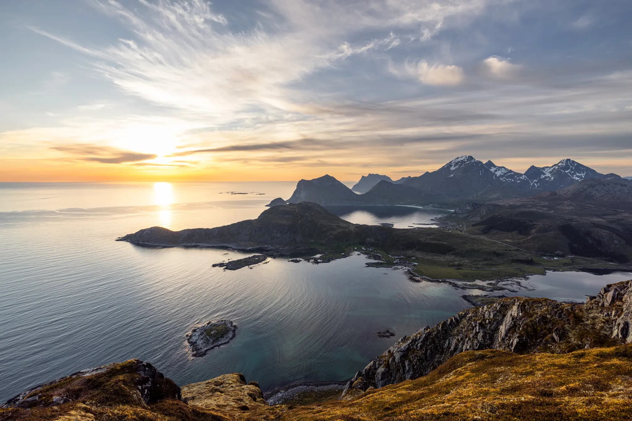 - Der Guratinden ermöglicht ebenfalls eine tolle Aussicht in diese Region der Lofoten, jedoch in Richtung Westen und damit direkt in die niemals untergehende Sonne hinein